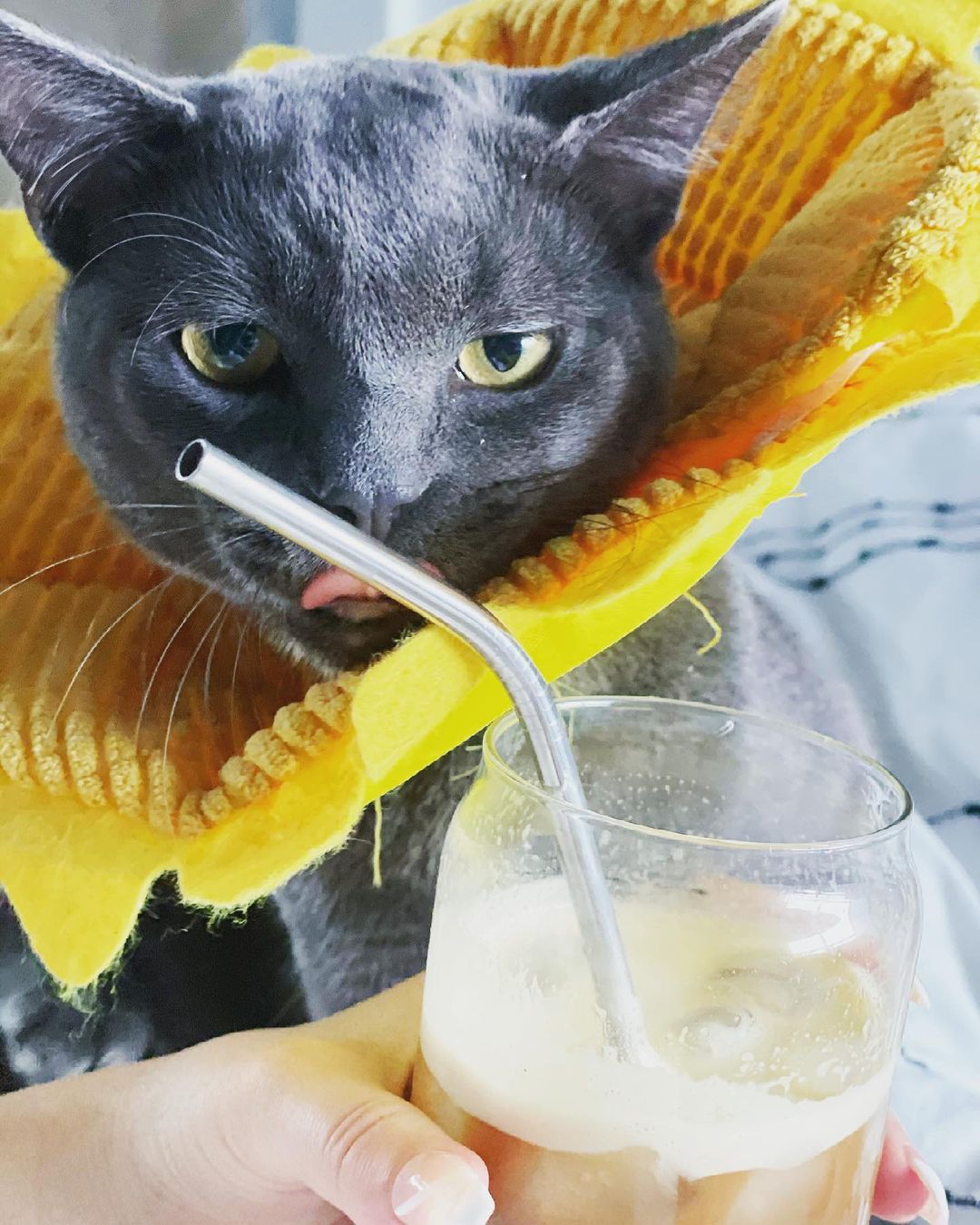 Russian blues are known for their thick, gorgeous blue-gray coat and bright eyes. These cats are sweet, loyal, and cautious animals who love having a routine.